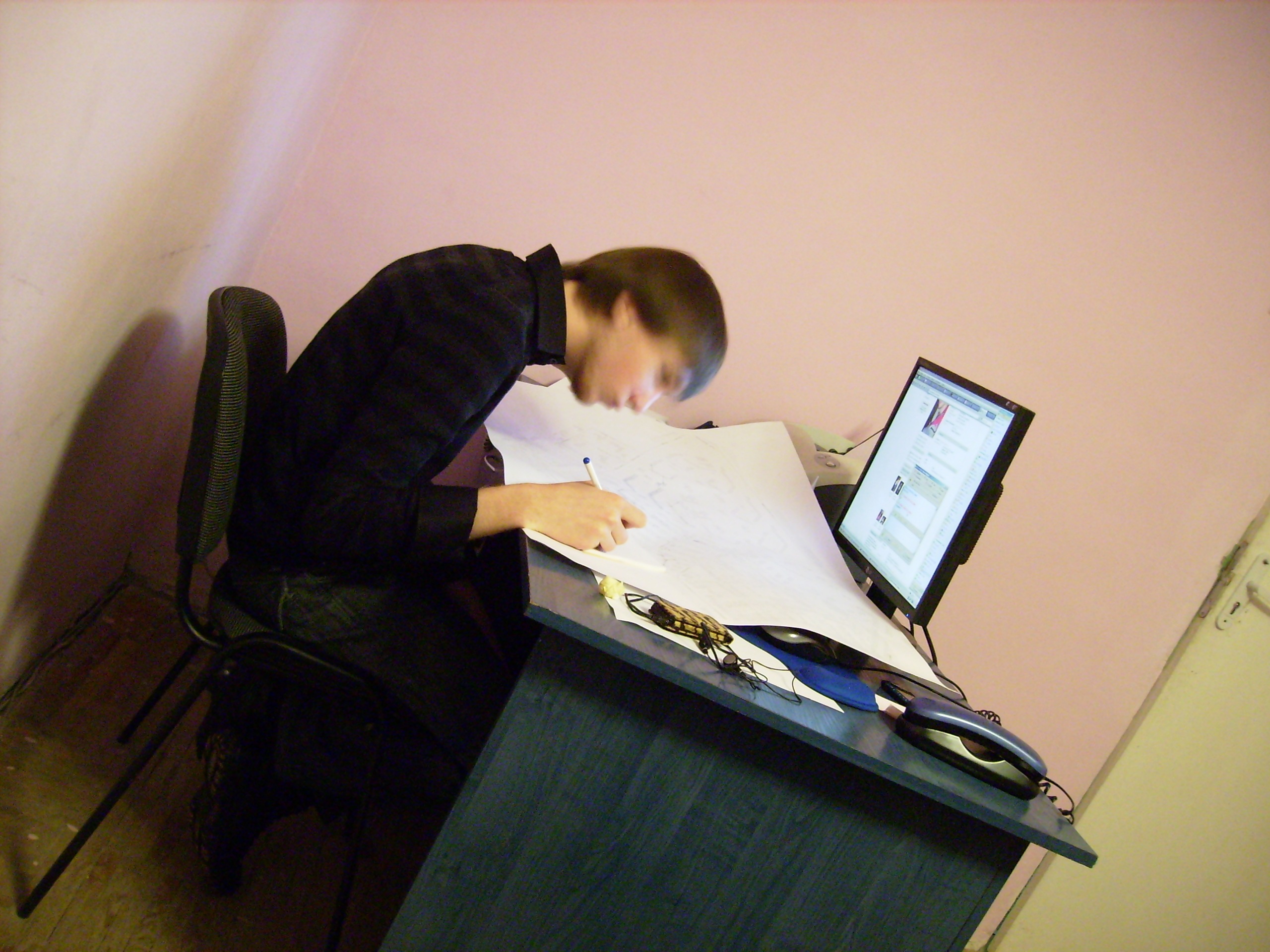 A configurar o primeiro pequeno escritório.