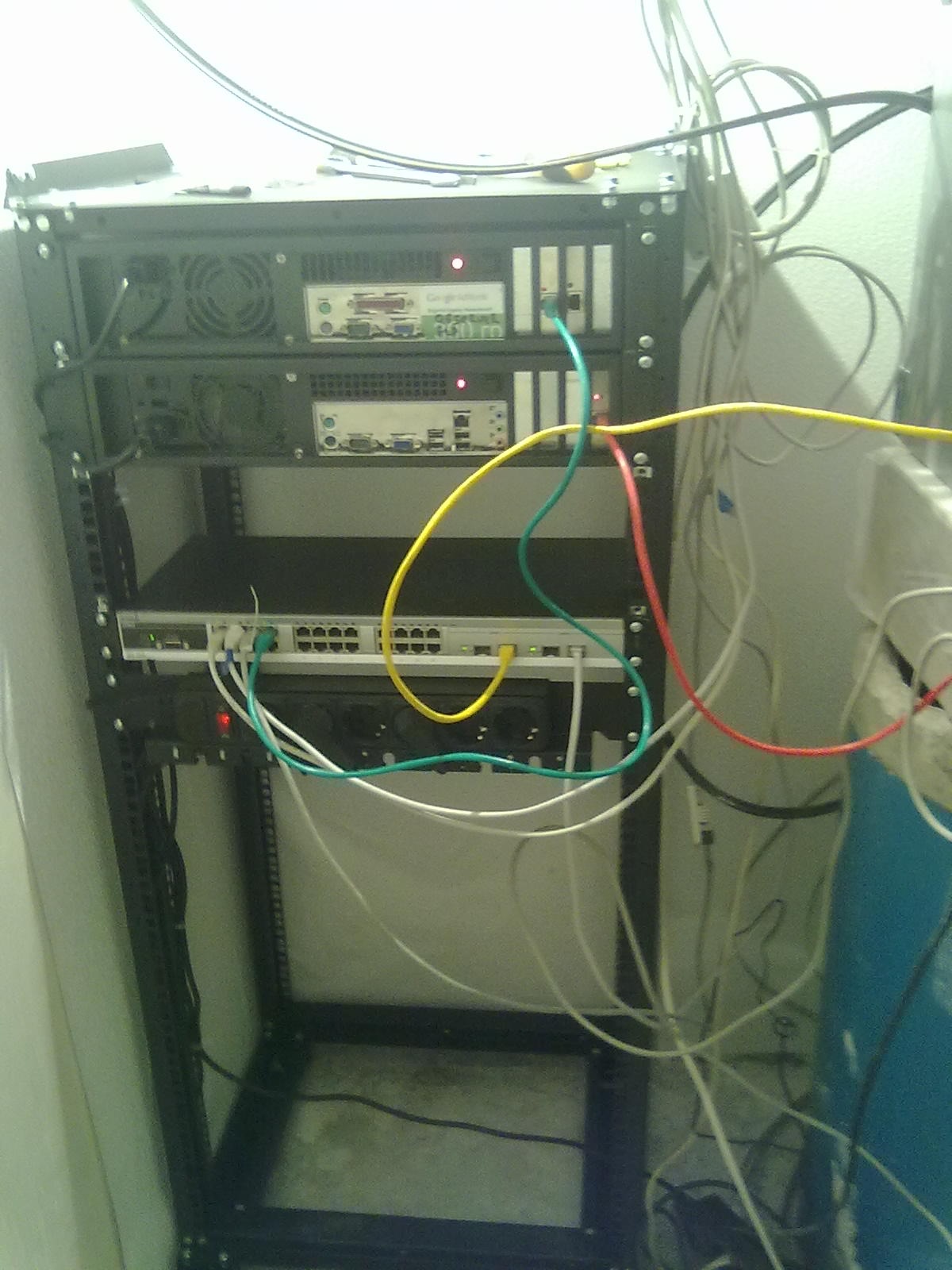 Conseguimos tirar os computadores/servidores de casa e movê-los para um armário. Para fazer isto, tivemos que passar cabos Cat 5e e cablagem eléctrica para o armário. Como não podíamos deixar os cabos visíveis, tivemos que abrir um sulco na parede por cerca de 15 metros e depois rebocá-lo para que não fosse visível. Os vizinhos não ficaram muito contentes.