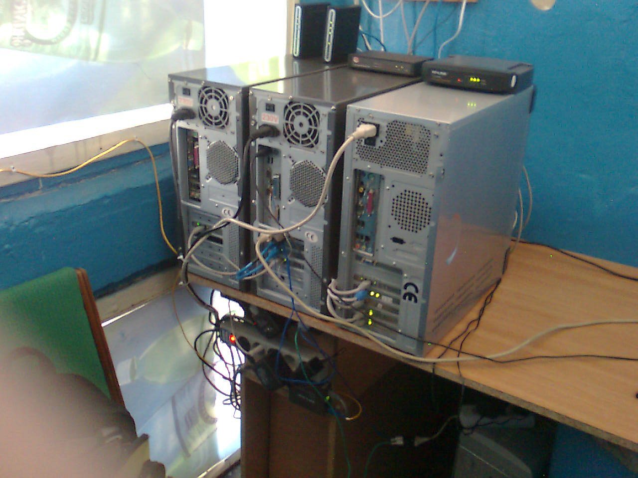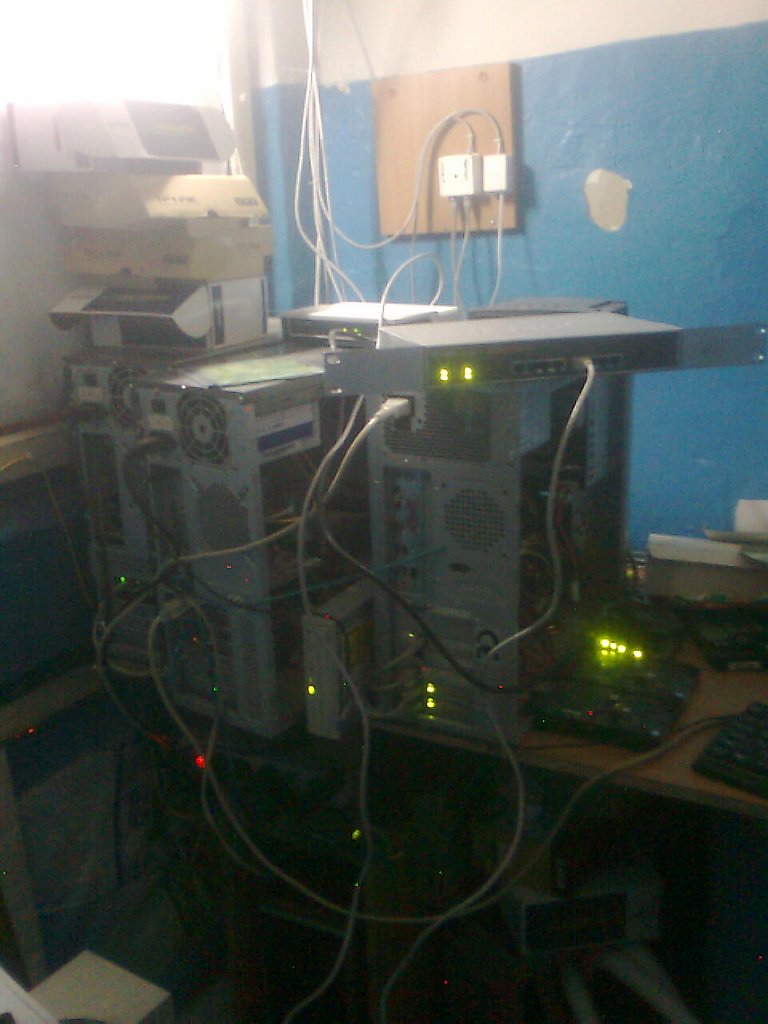 Gradualmente, começámos a organizar tudo e continuámos a expandir a rede via Wi-Fi para as partes mais remotas da cidade que não tinham acesso normal à internet. Entretanto, os clientes começaram a mostrar interesse activo em servidores virtuais e dedicados. À medida que a nossa rede local e alojamento se expandiam, também crescia a nossa infraestrutura de servidores. Tínhamos canais de acesso à internet e uma pequena sala de servidores (o mesmo armário) onde os servidores estavam localizados, servindo tanto a nossa rede quanto os primeiros clientes de alojamento. Ficou quente no armário, e tivemos que resolver este problema. Pode parecer engraçado, mas partimos os tijolos na parede do armário (sabendo que havia um ducto de ventilação) e instalámos um ar condicionado de janela. Conseguimos baixar a temperatura para 25°C. Tivemos que fazer isto urgentemente porque o equipamento estava a sobreaquecer. Ficou claro que tínhamos ultrapassado o armário e precisávamos de fazer uma mudança.