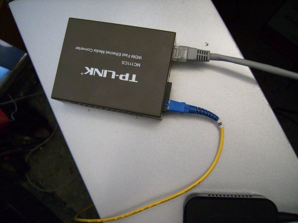 Quando a internet ilimitada de dois modems ADSL já não era suficiente para todos os utilizadores da rede, construímos a nossa primeira "última milha" óptica para obter um canal de internet mais estável e mais largo.